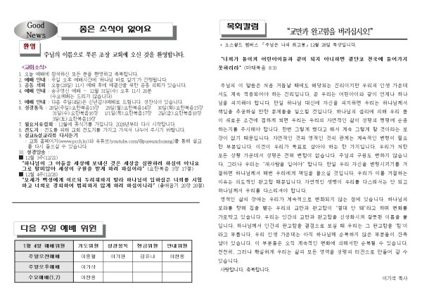 2025년 12월 25일 푸른초장교회 주보(성탄예배)