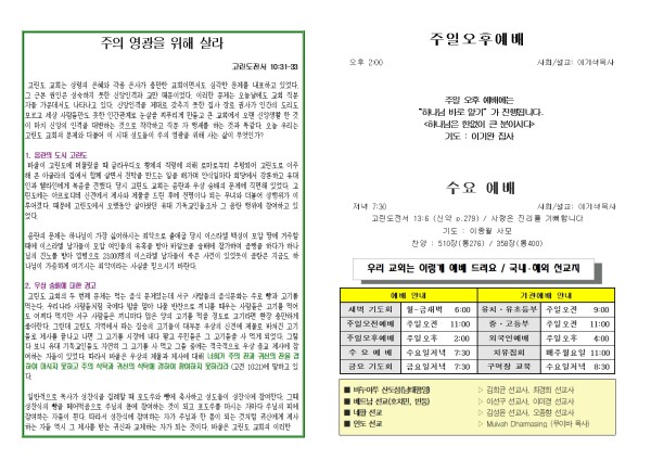 2025년 8월 31일 푸른초장교회 주보