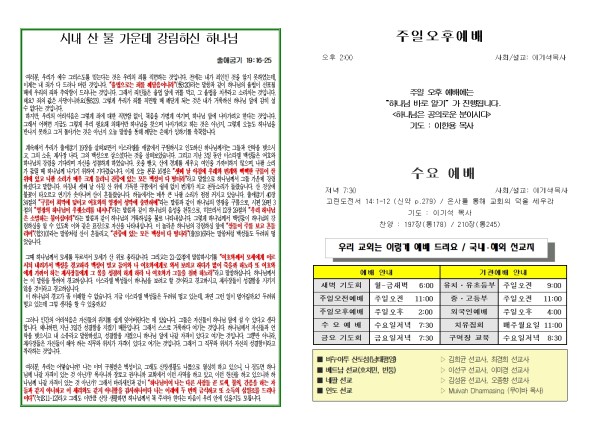 2025년 9월 14일 푸른초장교회 주보