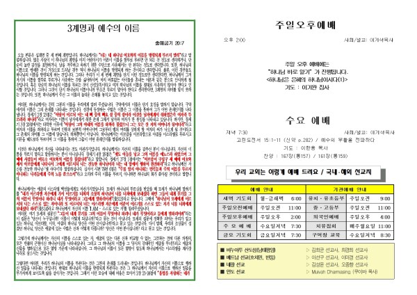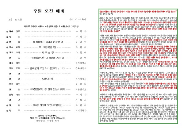 2025년 10월 19일 푸른초장교회 주보