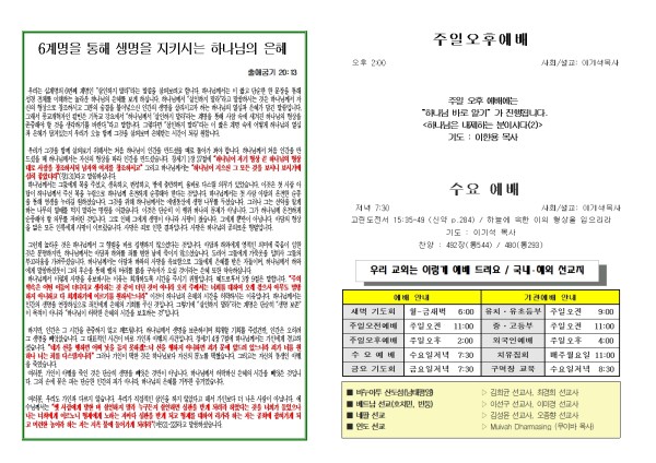 2025년 11월 9일 푸른초장교회 주보