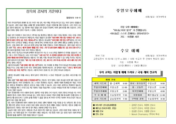 2025년 11월 23일 푸른초장교회 주보