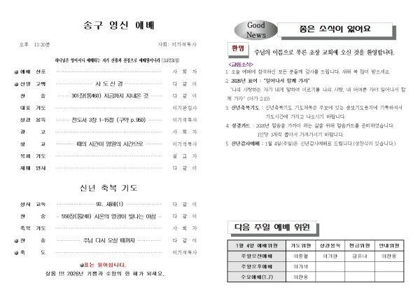2025년 12월 31일 푸른초장교회 주보(송구영신)
