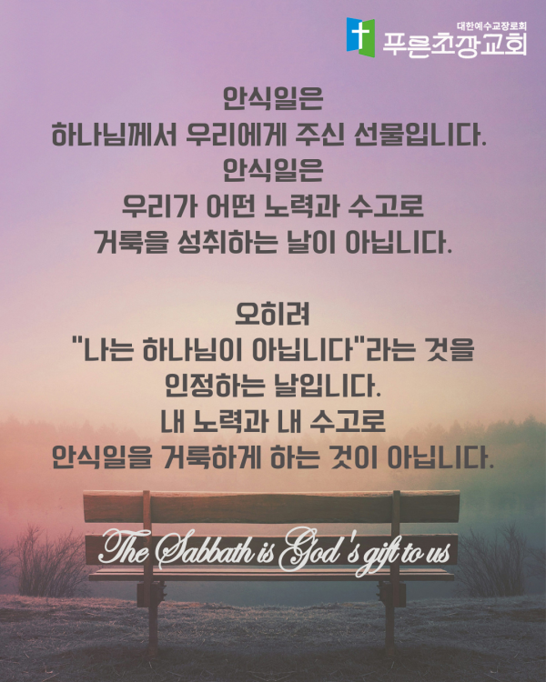 설교제목 : 거룩함은 하나님의 선물이다