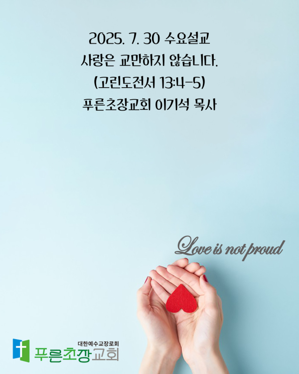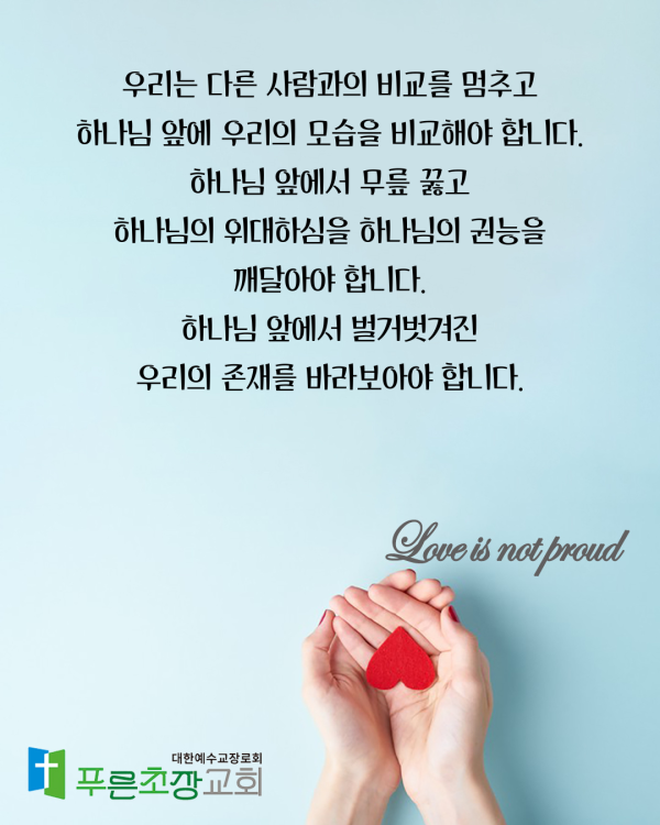 설교제목 : 사랑은 교만하지 않습니다