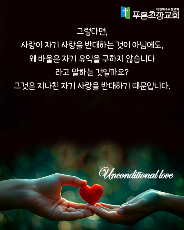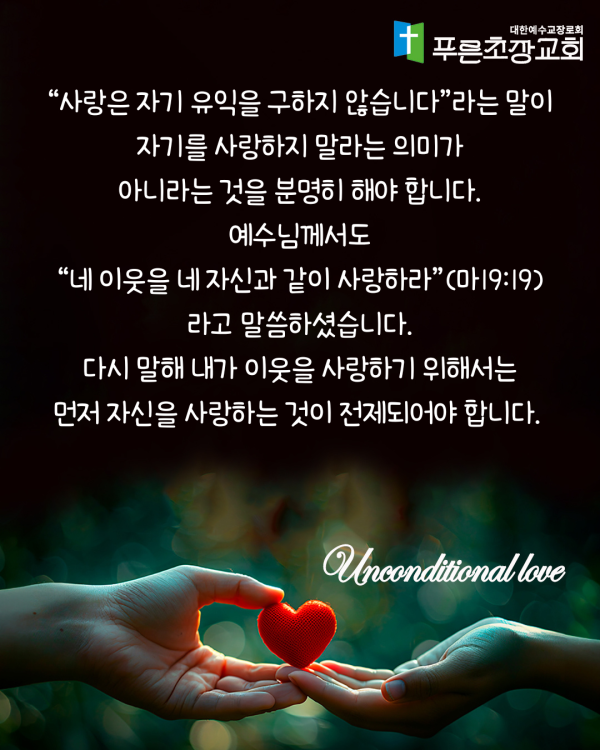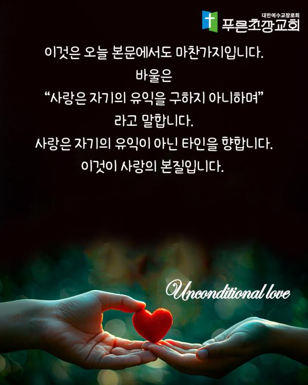 설교제목 : 사랑은 자기중심적이지 않습니다