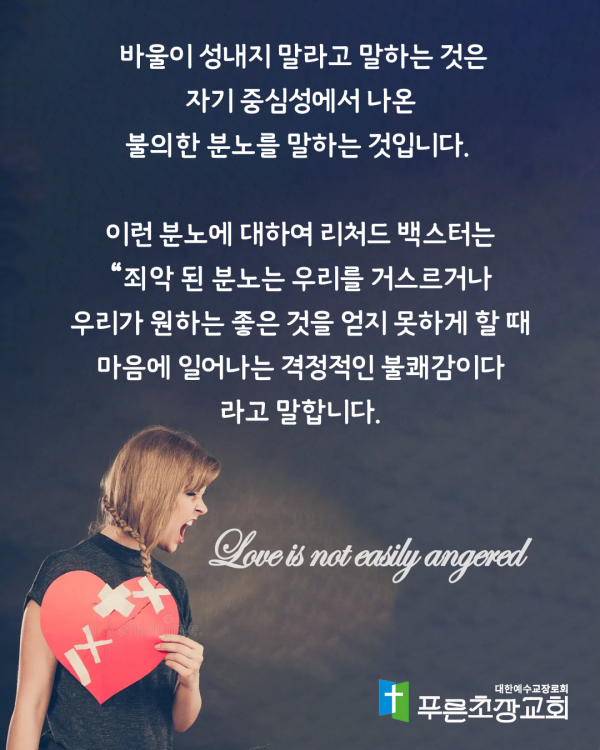 설교제목 : 사랑은 성내지 않습니다