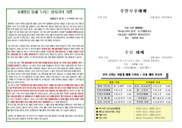2025년 12월 7일 푸른초장교회 주보
