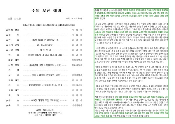 2025년 8월 24일 푸른초장교회 주보