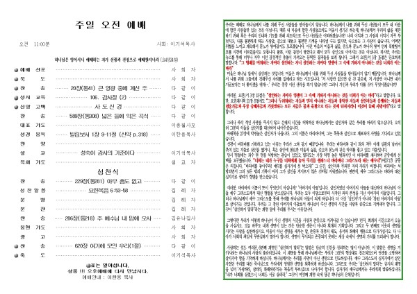 2025년 11월 9일 푸른초장교회 주보