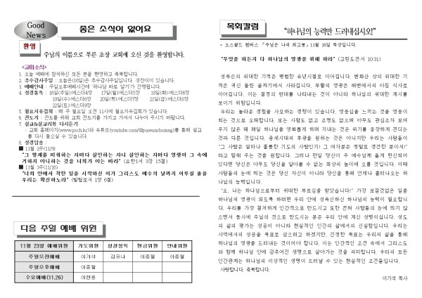 2025년 11월 16일 푸른초장교회 주보