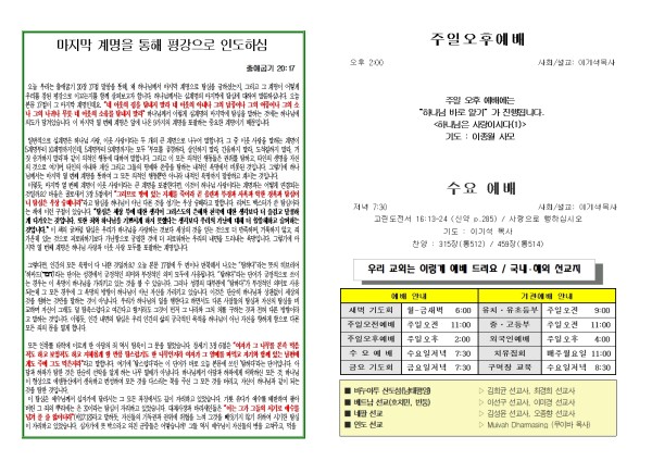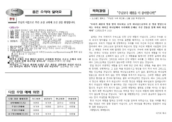 2025년 12월 25일 푸른초장교회 주보(성탄예배)