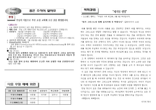 2026년 3월 8일 푸른초장교회 주보