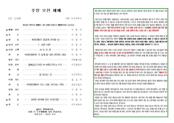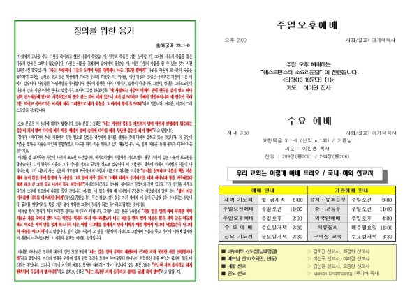 2026년 3월 8일 푸른초장교회 주보