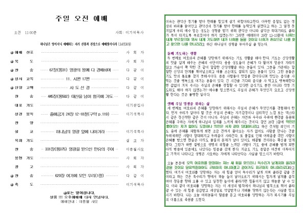 2026년 4월 26일 푸른초장교회 주보