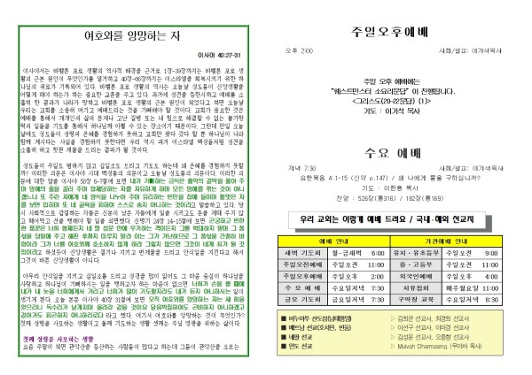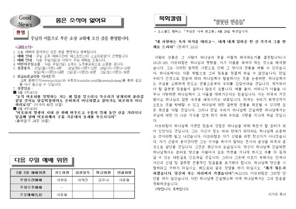 2026년 4월 19일 푸른초장교회 주보