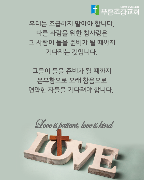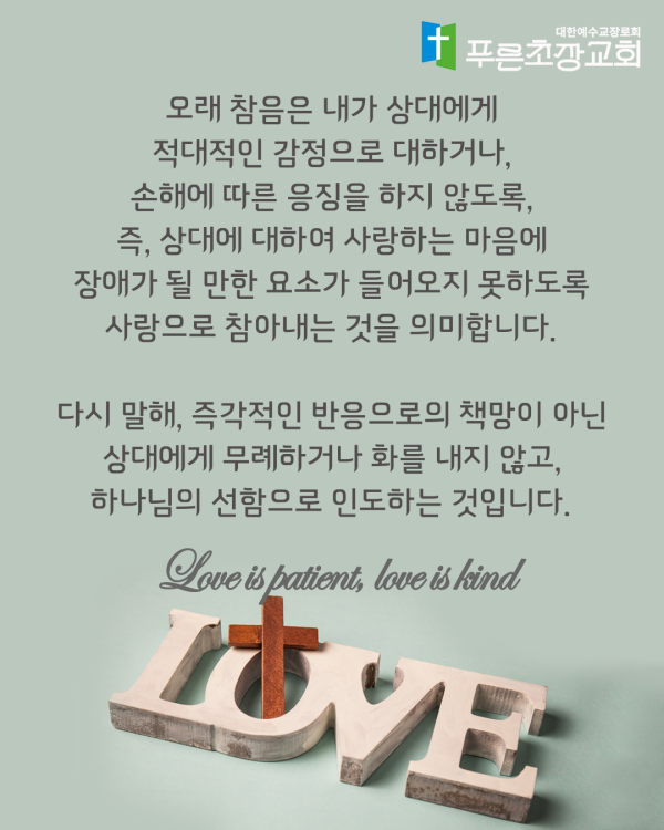 온유함으로 오래 참는 사랑 | 고린도전서 13:4