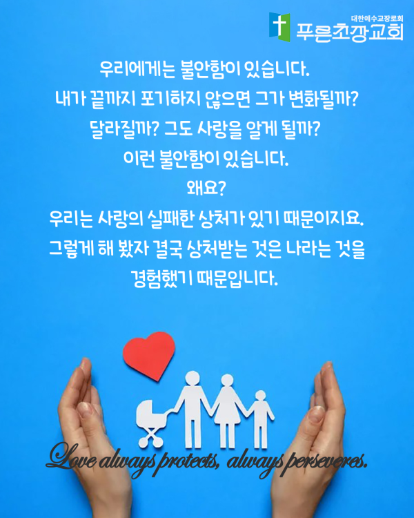 설교제목 : 사랑은 결코 무너지지 않습니다